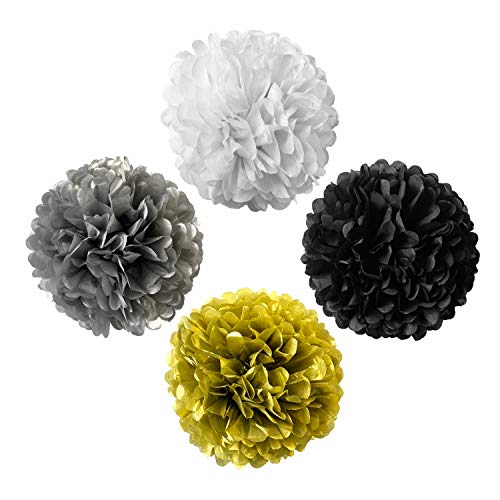 4 colores surtidos: blanco, plateado, negro y oro, pompones de papel de seda de alta calidad, adecuados para paredes, techos y cubos.