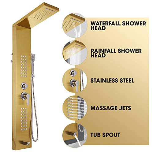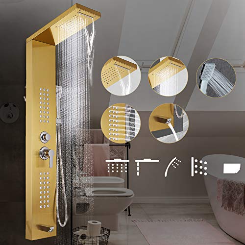 Cueffer Panel de Ducha de Acero Inoxidable Columna de Hidromasaje 5 en 1 Columna de Hidromasaje para Hogar Hotel (separado, dorado)