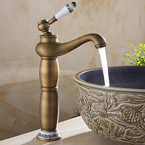 Flor de La Vendimia Sola Manija Faucet Faucet Faucet Latón Agua Caliente Cocina Baño Cuenca decoración Hotel (Antiguo) (19 * 16.5 * 6.4cm / 7.48 * 6.5 * 2.52in)