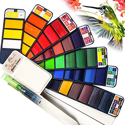 - ★ acuarelas portátiles; sartén acuarela de viaje, resistente y portátil de plástico ligero; las acuarelas son extraíbles individualmente; el juego incluye un cepillo de acuarela de alta calidad, apto para proyectos de dibujo y pintura, para estudio o pintura al aire libre.