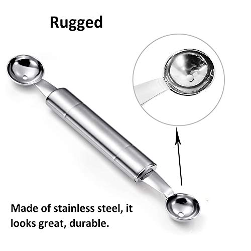 YUIP 2 Piezas Cucharada de melón, Doble-Cabeza multifunción Fruta Cucharada de melón Helado, Postres Frutas Cuchara de Cocina Cocina Herramienta(de Acero Inoxidable)