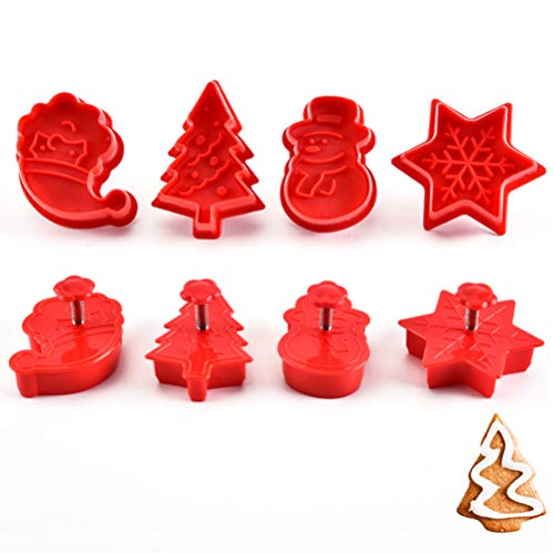 - Forma divertida diseñada para Navidad, juego de moldes de galletas combinadas de 4 piezas, estampador de elementos navideños, que incluye muñeco de nieve, árbol de Navidad, copo de nieve y azúcar.