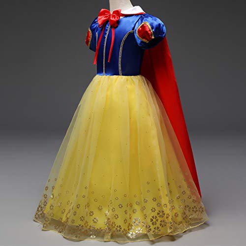- VESTIDO LINDO: Disfraz infantil Blancanieves Traje de princesa Snow White para niƱas de 3 a 8 aƱos. DiseƱo de retazos en color, blusa de manga de hojaldre corta con hilo dorado para resaltar el exquisito vestido, que combina con una capa roja. Este fantƔstico vestido te ayudarƔ a estar en el centro de la fiesta.