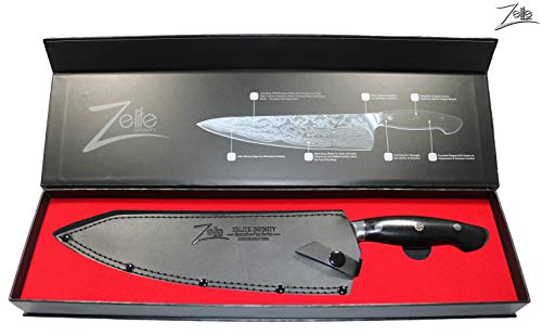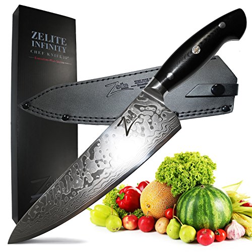 Zelite Infinity Cuchillos Cocina Cuchillo Chef 25cm – Serie ExecutivePlus – Cuchillos Cocina Pro-fesional Acero Japonés Damasco AUS10 45 Capas – Cuchillos Japoneses Hoja Profunda 60 mm, Funda de Cuero