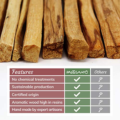- El incienso Palo Santo Especial se comprueba en el origen escogiendo las partes más aromáticas de la planta. Lucha contra la explotación intensiva, elige este incienso natural por un mundo sostenible donde los sueños se cumplan respetando la naturaleza.