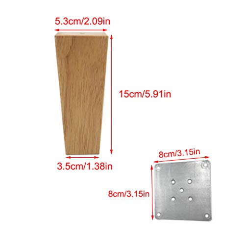 Patas para Muebles de Roble,Pies de Sofá/Mesa de Café de Madera Maciza,Pies de Soporte de Muebles,Pies de Mesa/Gabinete,con Placa de Hierro Fija y Tornillos,Cono Recto Cuadrado(15cm/5.91in)