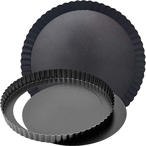 - 【Diseño duradero y confiable】 Los lados acanalados de la bandeja circular circular aumentan el área de superficie. Esto da como resultado una cubierta exterior estable que puede contener y contener componentes pesados de quiche o pastel de frutas. El recubrimiento antiadherente y la base removible facilitan el aflojamiento y la limpieza.