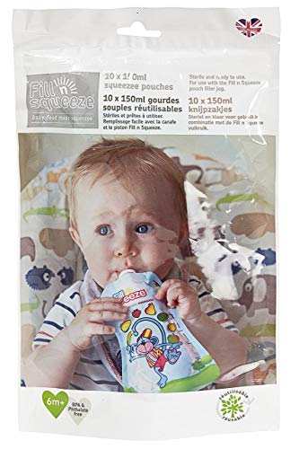 Fill'n Squeeze, Paquete de Relleno de Bolsas de Alimentos Resellables Reusables para Destete de bebés y Alimentación de niños, 10 x 150 ml