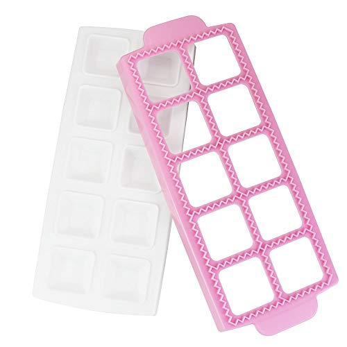 CODIRATO Moldes para Empanadillas, Molde de Raviolis 10 Cuadrados Moldes para Pastas para Hacer Raviolis, Pie, Empanadillas, Pastas o Galletas (Rosa, 26.5 * 10.5 * 2 cm)