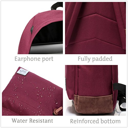 VASCHY Mochila Escolar,Mochila Hombre Mujer Casual Resistente al Agua Mochila Portatil 15.6 Pulgadas para Colegio Trabajo Viaje Rojo