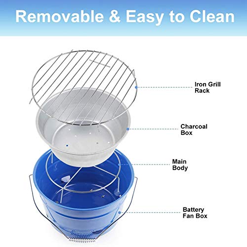- Fácil de limpiar y seguro: la parrilla consta de cinco partes simples, que son fáciles de instalar y de operar y limpiar, ya que el carbón se quema dentro de un recipiente de malla cerrado en todo momento y tiene un cierre de seguridad que evita que el recipiente se caiga fuera de la parrilla en caso de que se caiga. ¡Hacer la barbacoa más fiable!