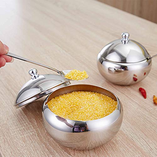 Azúcar Bowl, 304 tarros de especias de acero inoxidable para condimentos para el hogar, lata de metal, recipiente de condimento con tapa y cuchara para sal azúcar, café y té hierbas (L)