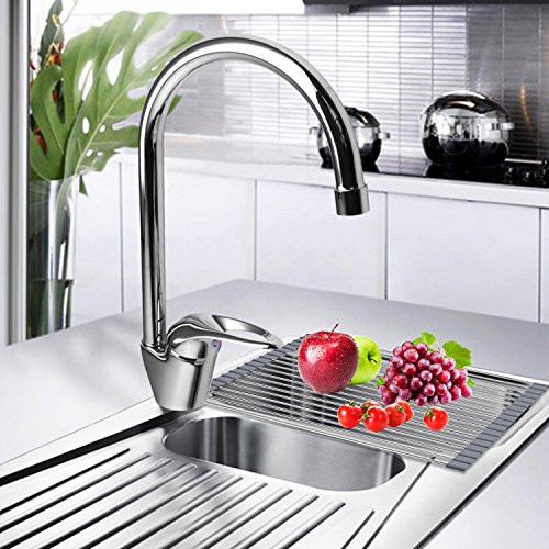 - [Premium y material de seguridad]: nuestra rejilla de secado de platos está hecha de acero inoxidable 304 y grado de FDA, caucho de silicona libre de BPA. 18 piezas de tubos de acero inoxidable están bien pulidas. Dish Drying Rack es seguro para entrar en contacto directo con alimentos, frutas y verduras, etc., proporciona una solución perfecta para colocar en el aire los cuencos, platos, utensilios de cocina, cubiertos, y más.