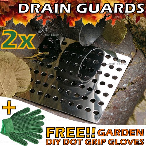 - ✅ 2 paquetes de cubiertas de drenaje de acero inoxidable + par de guantes de jardinería Super Grip gratis