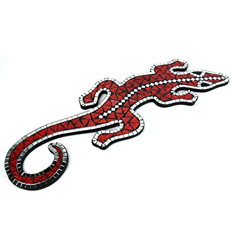 Artisanal Gecko margouillat Salamandre Pared 60 cm mosaicos de Vidrio Rojo