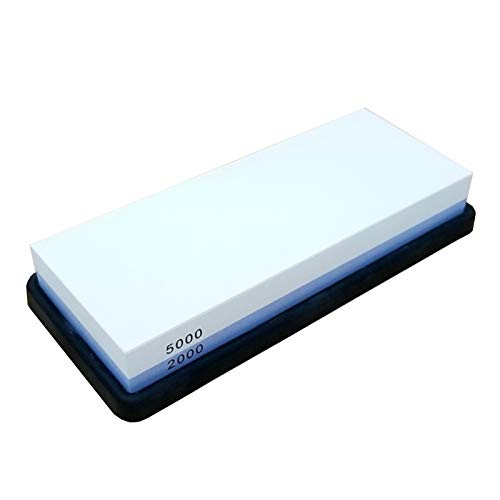 - Paquete superior: su kit completo de afilado de cuchillos viene con piedra de afilar de primera calidad de doble cara (# 2000 / # 5000), base de silicona antideslizante.