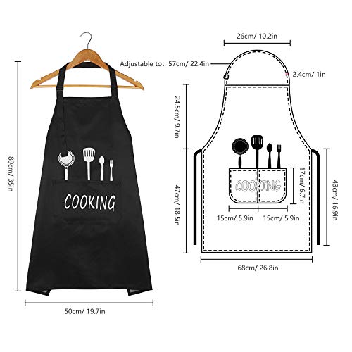 Delantal de Cocina Impermeable con Bolsillos Correa para el Cuello Ajustable Delantales Hombre Mujer Delantal Cocinero Mandil Cocina para Jardinería Restaurante Barbacoa Cocinar Hornear (Negro)