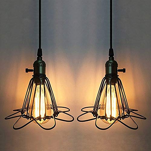 2 Piezas Industrial Iluminación Colgante, Vintage Lámpara Colgante de Jaula de Metal, E27 Moderna Colgante de Luz para Dormitorio Restaurante Cafetería y Bar Decoración