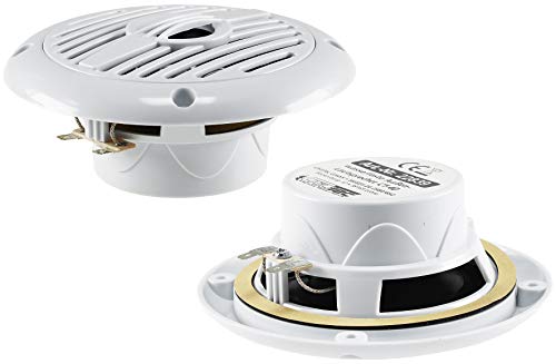 Altavoz exterior de 4 / 100 mm, 60 W, sistema de 2 vías, resistente a la intemperie, incluye cable, para interior y exterior, jardín, terraza, jardín de invierno, barco, camper, color blanco