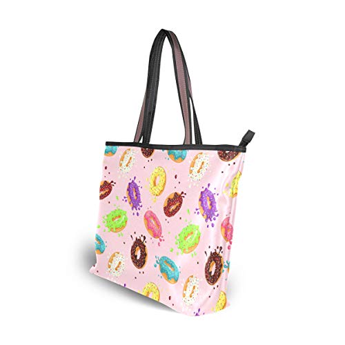 Mnsruu - Bolso de mano con cremallera para mujer, tamaño grande, bolsa de hombro casual, L (rosquillas con rosa), color, talla Medium