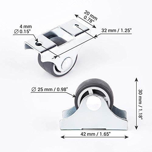 (Paquete de 8 psc) Ruedas pequeñas fijas de 25 mm Ruedas resistentes Ruedas no giratorias Ruedas de goma para carrito de mesa de muebles (8)