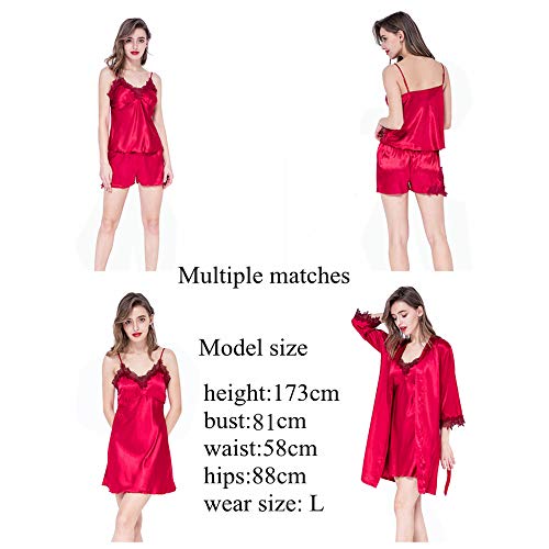 Conjunto de Pijamas 4 Piezas Camisones Conjunto Pijama Encaje Sexy Elegante Ropa de Interior Dormir Pijamas para Mujer Elegante Sexy Ropa para el Hogar Fiesta Temática de Pijama (Vino Rojo, M)