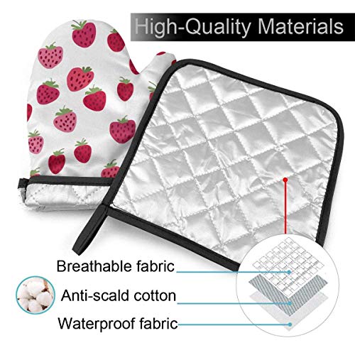 ND Guantes y Soportes para ollas de Color Rosa con Fresas y Guantes de Horno Resistentes al Calor con Superficie Antideslizante para una Barbacoa Segura.