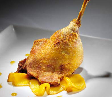 - Consejos de Uso: Calentarlo ligeramente para eliminar el exceso de grasa y después dorarlo al gusto en el horno. La grasa que recubre el muslo es muy adecuada para cocinar la guarnición del Confit, unas patatas por ejemplo. También se puede separar la carne del hueso, desmigándola y utilizarla en frío o en caliente para ensaladas, rellenos,…