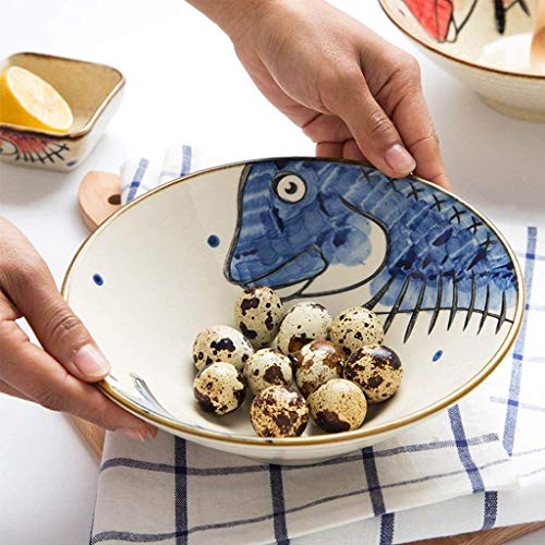 WEHOLY Cena Ensalada de cerámica Japonesa Tazón de Fruta Fideos Ramen Sopa Pasta Tazón Vajilla Lindo Pescado Pintado a Mano (Tamaño: cm (9 Pulgadas))