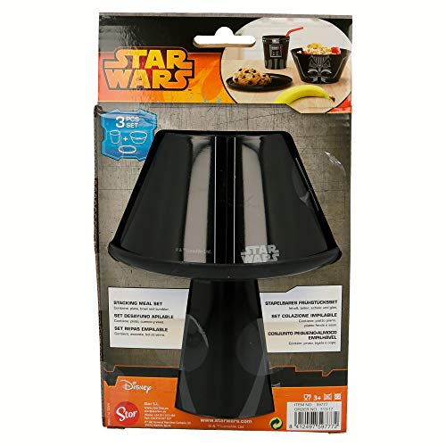 - Original set para comida compuesto por vaso, plato y cuenco de forma que, al apilar los 3 elementos, forman la silueta del cuerpo de algunos de los personajes más conocidos del cine y la televisión. Un producto ideal tanto para regalo como para uso diario, que tanto niños como adultos estarán encantados de utilizar en todo momento. Características: - Libre de BPA - Material totalmente apto para comida. - Fácil de limpieza - Capacidad vaso: 320 Ml.