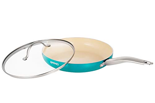 EPPMO Sartén Antiadherente de Aluminio 26cm sin PFOA, Sartén de Cerámica Resistente a Alta Temperatura con Tapa. Apto para todo tipo de Cocinas incluido Inducción, Azul Tiffany, Saltear Freir Asar