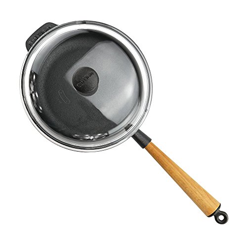 Carl Victor - Sartén Alta de Hierro Fundido 25 cm con Mango de Madera y Tapa de Cristal, Inducción