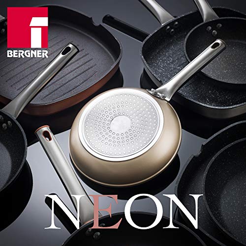- Set de sartenes Bergner de la colección Neon Rosé Gold, con la que ofrece un elegante color rosé dorado en el exterior.