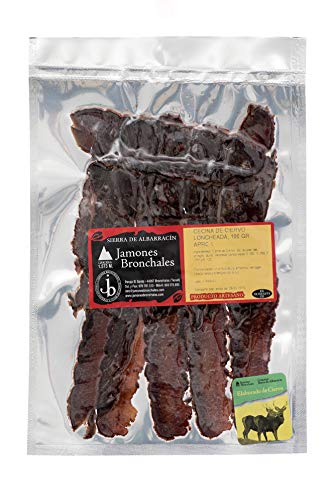 Jamones Bronchales - Cecina de Ciervo Elaborada Artesanalmente y de Curación Natural en el Secadero más Alto de España, en la Sierra de Albarracín - 100gr aprox - Curación mínima 5 Meses