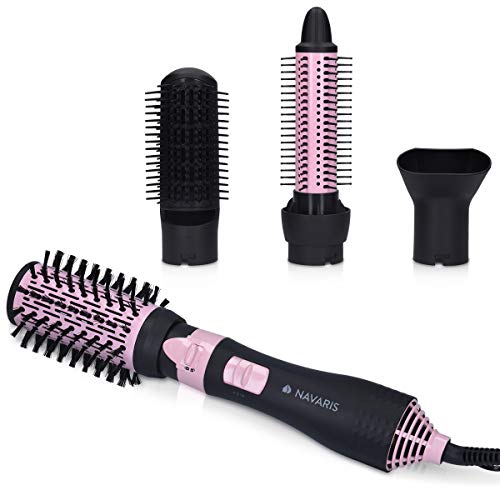 Navaris Cepillo moldeador eléctrico - Rizador de pelo con 4 accesorios - Cepillo de cerámica para peinar moldear y alisar pelo - Secador de cabello