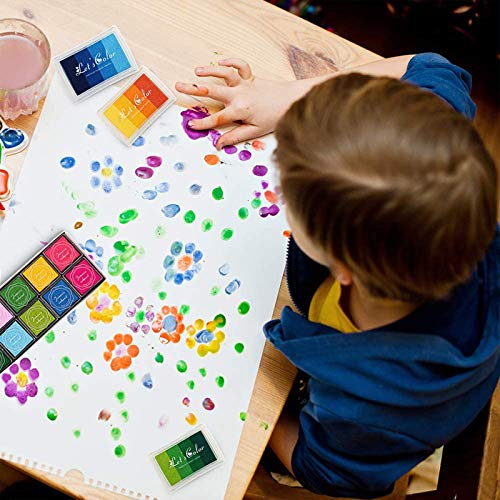 - ♥Seguro y fácil de Limpiar - Todas estas almohadillas de tinta de sello hechas de material de tinta de calidad, no tóxico, inodoro y soluble en agua. Se puede limpiar fácilmente con agua tibia y jabón. La tinta se puede limpiar fácilmente de manos, cara y brazos sin dejar residuos. No te preocupes más por las manchas de color en la ropa.