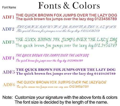 - Personalice su firma con varias fuentes y colores, desde fuentes de impresora y de escritura a mano. Autoentintado. Listo para usar cuando lo recibas.