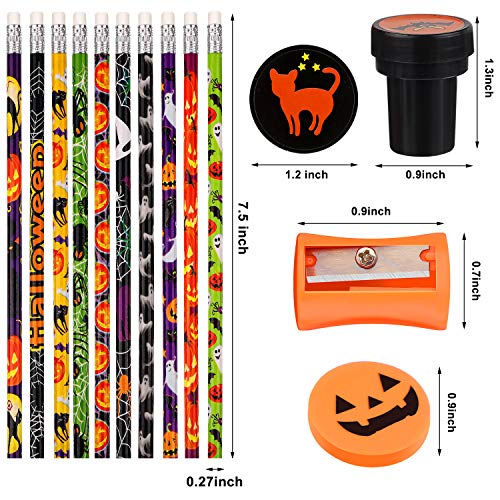177 Piezas Sets de Suministros de Fiesta de Papelería Escolar de Halloween Juguete de Favor de Fiesta de Premios Trick Treat Incluyendo Lápices de Halloween, Pegatinas, Sellos, Gomas y Sacapuntas