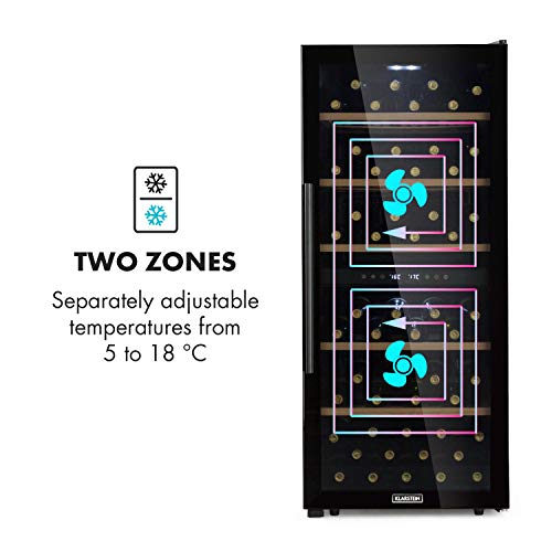 KLARSTEIN Barossa 102D -Nevera con Estante para Copas, Nevera para vinos, Nevera de Bebidas, Volumen para 102 Botellas, Temperatura de 5-18 °C, 2 Zonas, Control táctil, Vidrio Frontal, Negro