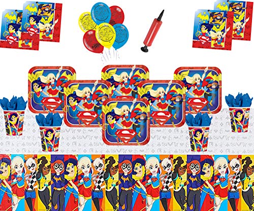 DC Super Hero Girls Party Supplies Decoración de vajilla de cumpleaños para niños DC Comics Party Pack 16 - Super Girls Globos Plate Cup Servilleta Cubierta de Mesa