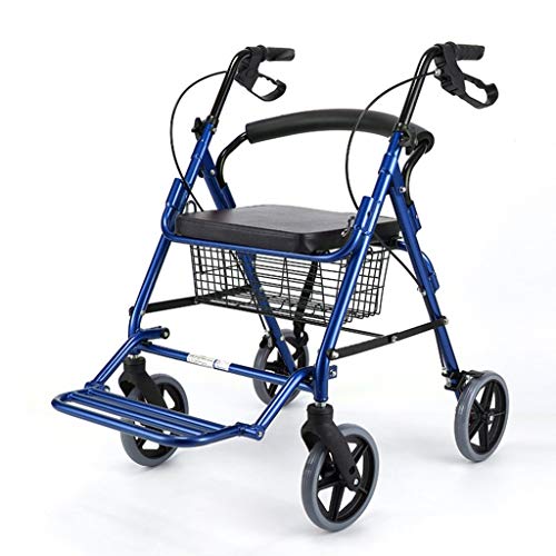 XHF Multifunción portátil de mano Camiones Compras, Hogar Pequeño sillón de ruedas mayor de ultramarinos de cuatro ruedas Caminar puede sentarse carrito plegable Walker auxiliar Walker,Azul