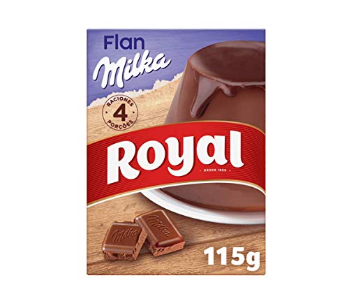 - Preparado en polvo para flan con sabor Milka de Royal, fĂĄcil y rĂĄpido de preparar