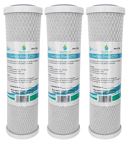 - 3x AquaHouse 10 "CTO Carbon Block cartuchos de filtro de agua, se adapta a todas las cajas de filtro estándar de 10" (diámetro del cartucho de aproximadamente 2,5 "). Adecuado para uso con sistemas de agua potable, filtros de ósmosis inversa, filtros de acuario,