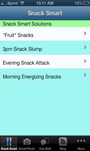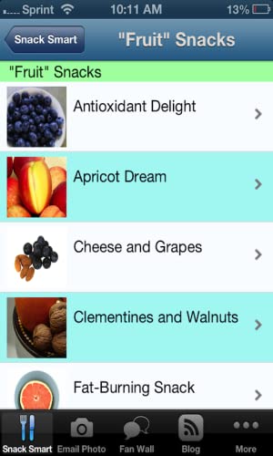 - Filter snack by time of day to best meet your nutritional and energy needs.