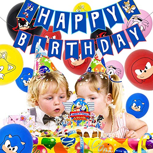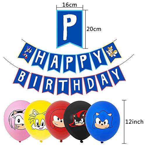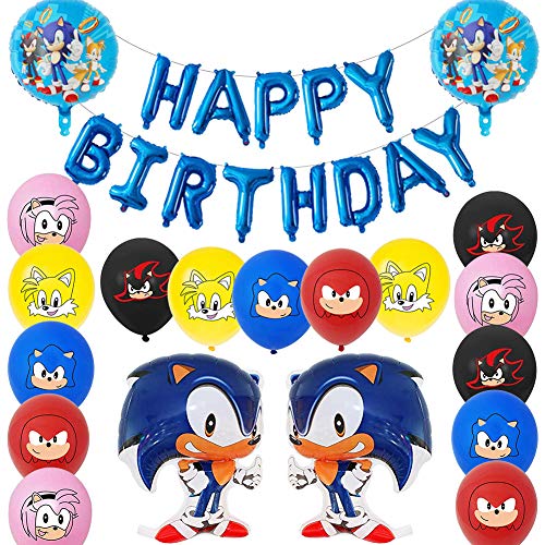 Sonic The Hedgehog Party Supplies, Sonic Foil Globos Juego de Decoración Sonic Erizo Frustrar Globo Bandera Set para Fiestas de Cumpleaños para Niños Fiesta Decoraciones de cumpleaños