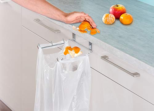 - USO VERSÁTIL: El compacto tamaño de este colgador de bolsas permite su utilización en armarios pequeños. Puede usarse como cubo de basura de cocina o como cubo de reciclaje.