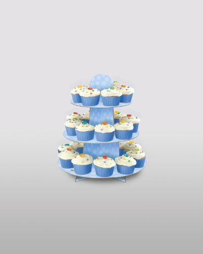 Unique Party 90399 - Soporte para Cupcakes para Baby Shower - Azul a Lunares