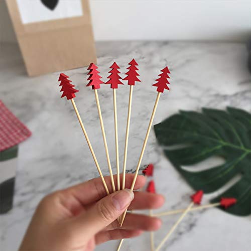 Upkoch - 200 piezas de madera en forma de árbol de Navidad, cóctel, palos de bambú, frutas, frutas, sándwich aperitivo, palos de cóctel, suministros de fiesta de Navidad, 100pcs, medium