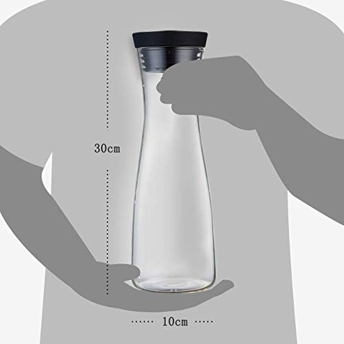 - 【Materiales ecológicos】 Tapa superior de silicona de grado alimenticio de acero inoxidable SUS304. La jarra de agua es gruesa pero duradera con alta dureza, resistencia térmica, transmisión de luz, la jarra de vidrio perfecta es adecuada para decantar y llenar agua fría y caliente, té, café, té helado, etc.