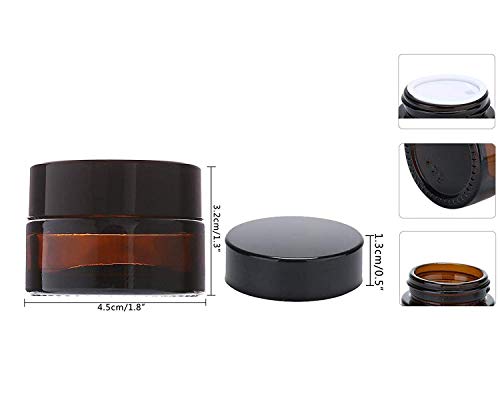 - EL PAQUETE INCLUYE: 10 Pack 5ml Ámbar tarro de vidrio con tapa negra, cada jarra de cristal está equipada con un forro blanco, perfecta encase es adecuado para cualquier pasta.